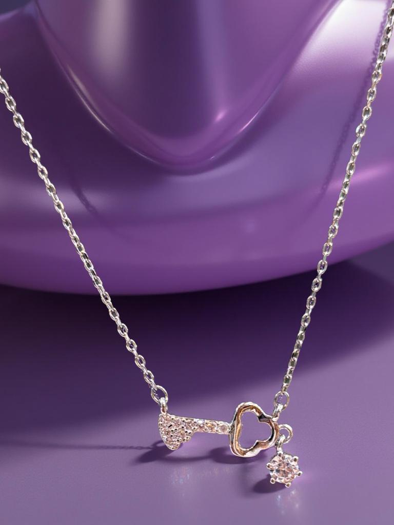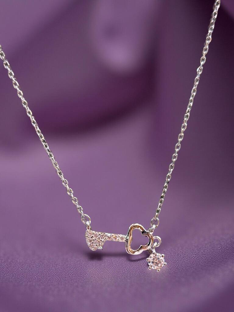 Elevate your accessory collection with the Dazzle Key Stone Charm Necklace, expertly crafted to combine elegance and modern design. Featuring a finely detailed key-shaped charm adorned with a sparkling stone, this necklace adds a subtle yet striking accent to any outfit. Perfect for layering or wearing solo, it offers versatility and a refined touch for both casual and formal occasions.