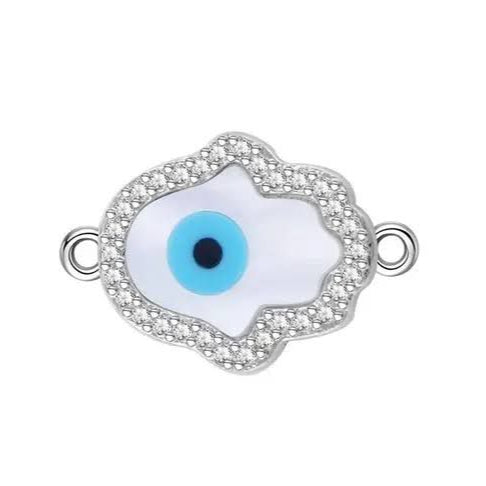 This elegant Hamsa Evil Eye Silver Charm Bracelet combines ancient protective symbols in fine sterling silver. The Hamsa hand and evil eye motifs work in harmony to ward off negative energies while the premium silver construction ensures durability and tarnish resistance. Each bracelet features meticulous craftsmanship with adjustable sizing for a perfect fit, making it both a meaningful talisman and sophisticated accessory for daily wear.