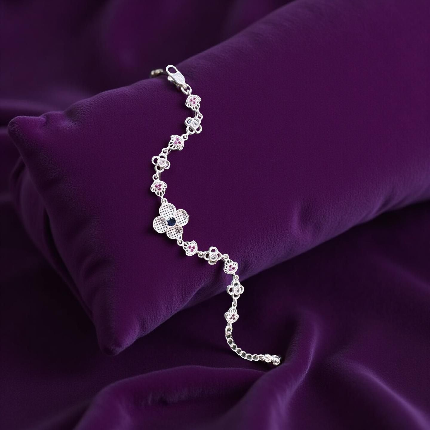 Elegantly designed floral bracelet featuring intricate encraft detailing that enhances any outfit. Crafted with precision for comfortable all-day wear, this women's accessory balances sophisticated artistry with contemporary style. Perfect for both casual and formal occasions. Purity:-70+ WG:-9 Grams