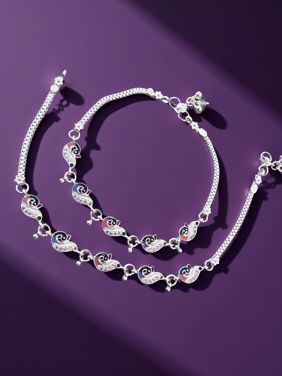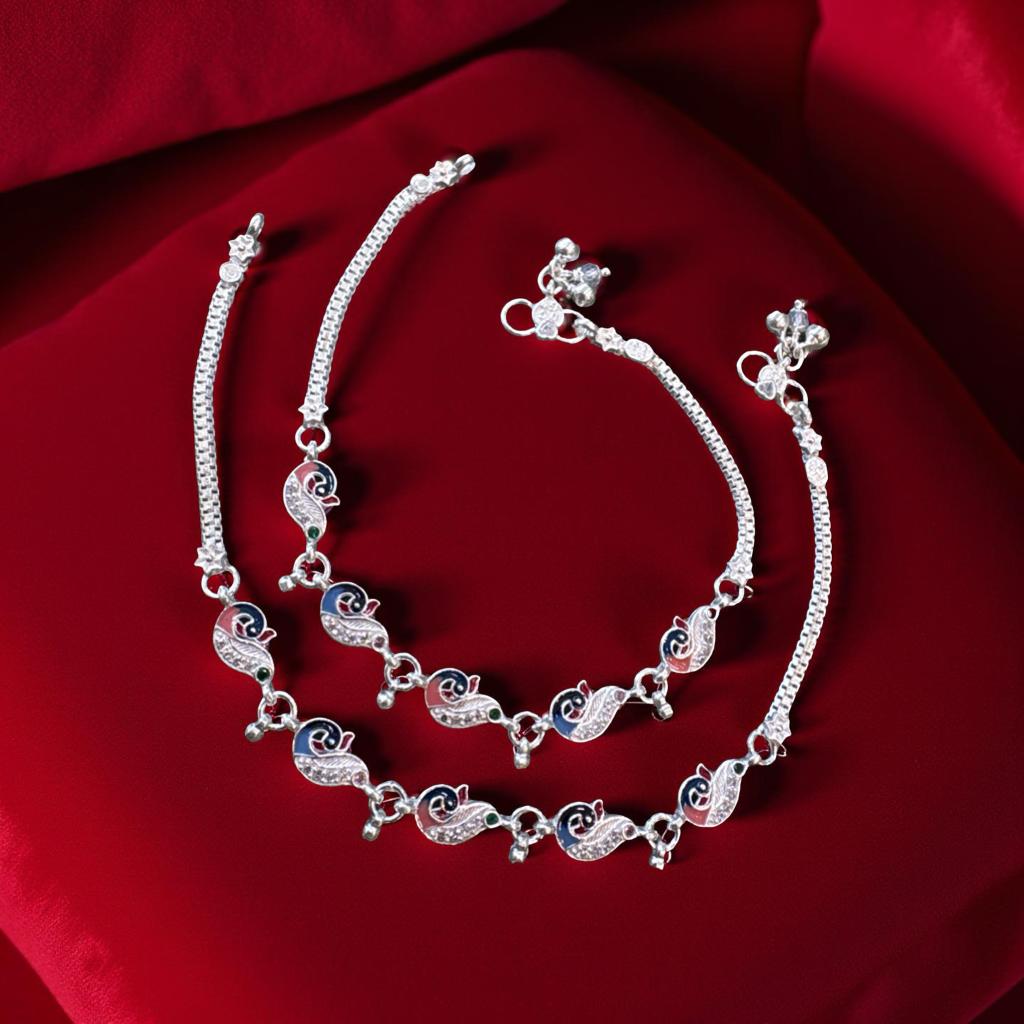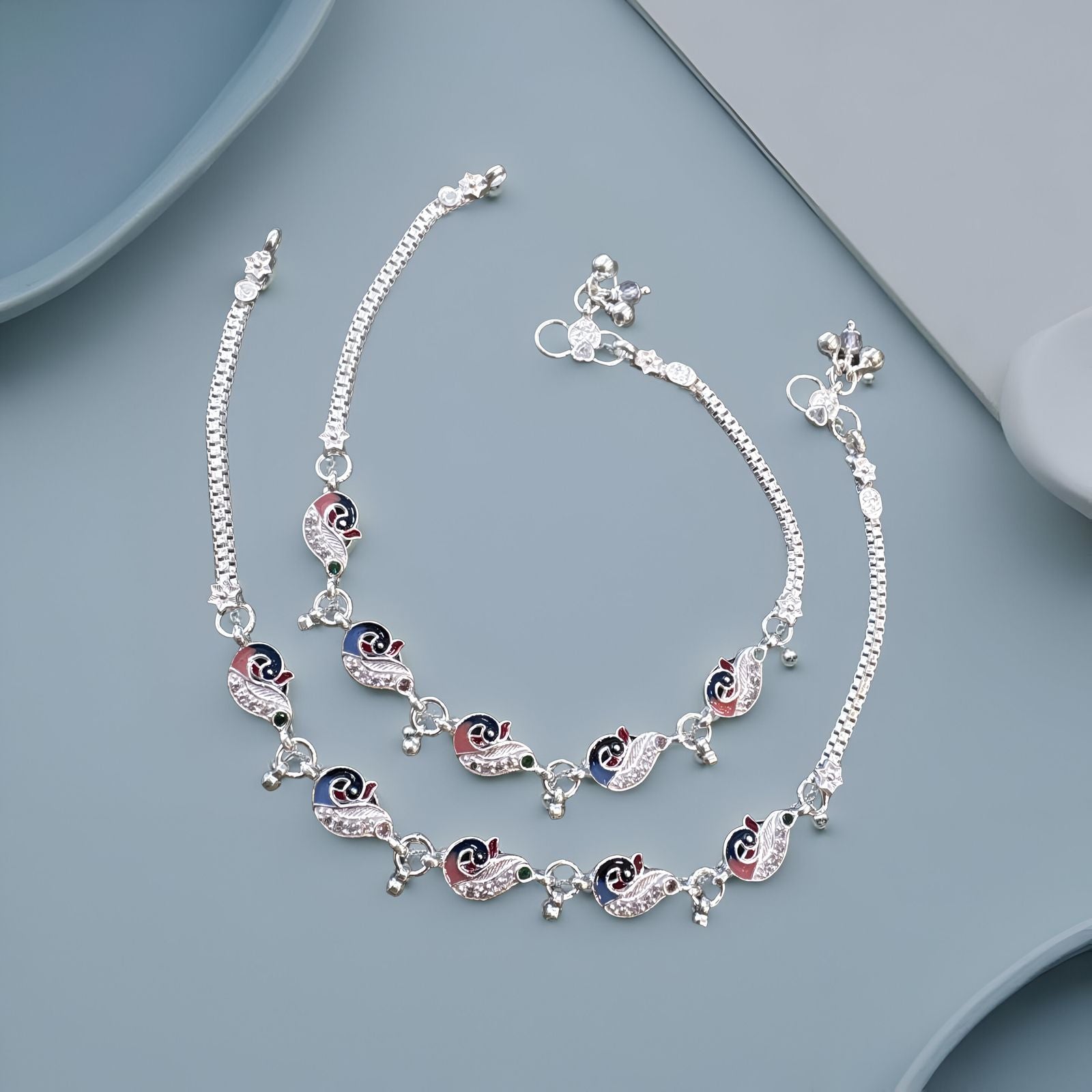 Elevate your style and add a touch of elegance with our Colourfull Peacock Ankelet (Payal) for Women. Made with vibrant colors and a delicate peacock design, this anklet will elevate any outfit. Stand out from the crowd with this unique and eye-catching accessory.