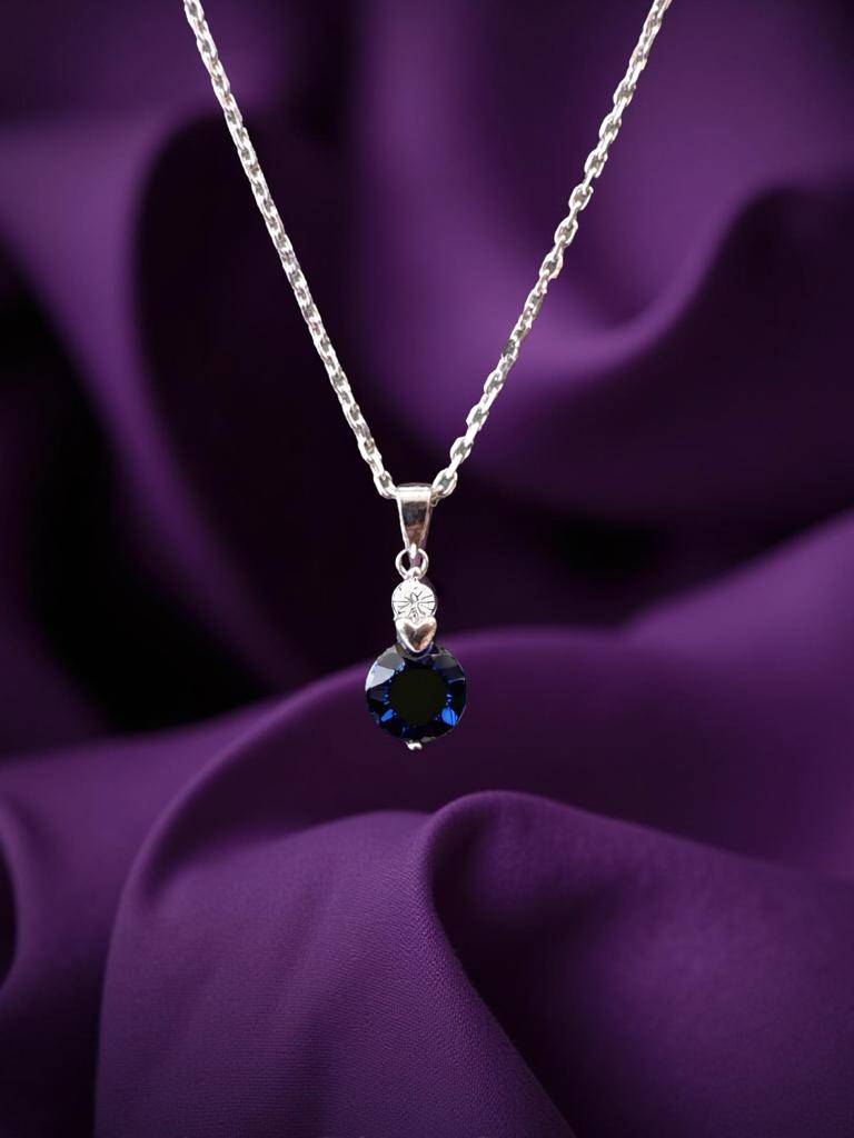 Dark Blue Sapphire Stone with White Diamond Pendant For Women