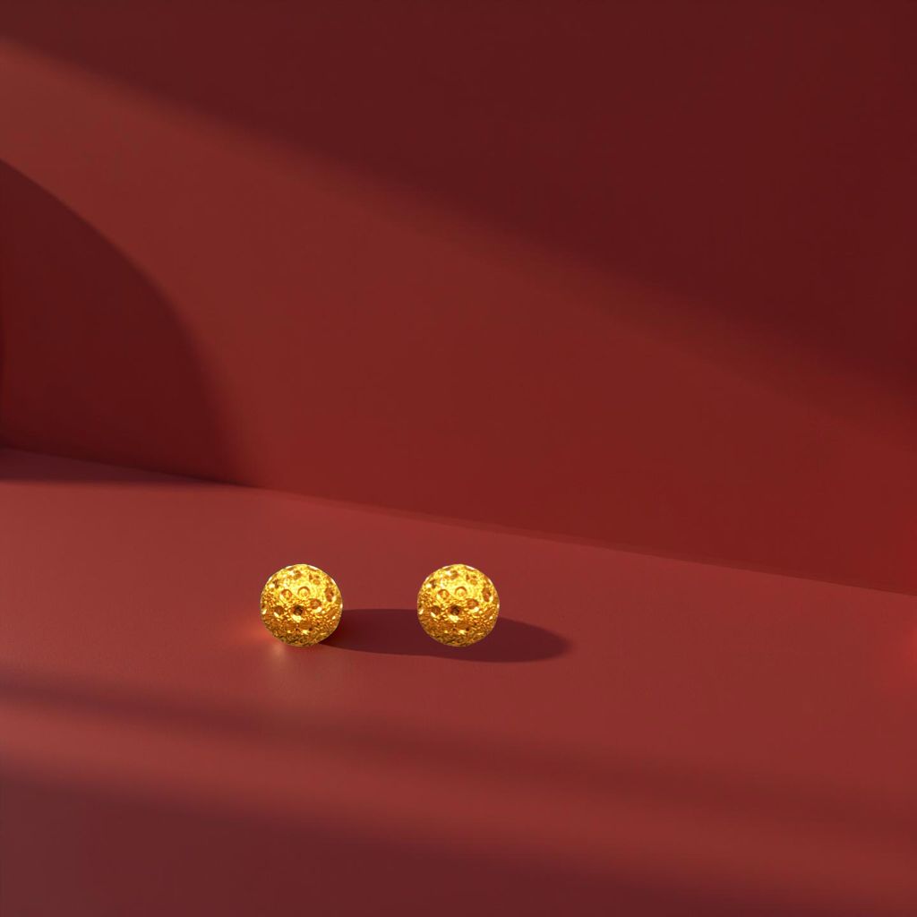 Honeycomb Round Button Gold Earrings