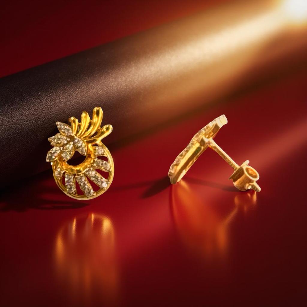 Exquisitely crafted Leafy Feather Diamond Gold Earrings combine nature-inspired design with premium craftsmanship. The delicate leaf and feather motifs, adorned with brilliant diamonds, create a sophisticated statement piece. Set in high-quality gold, these earrings offer the perfect balance of elegance and organic beauty for both everyday luxury and special occasions. Β  Purity:-91.60 Weight:- 2.850 HUID Hallmarked.