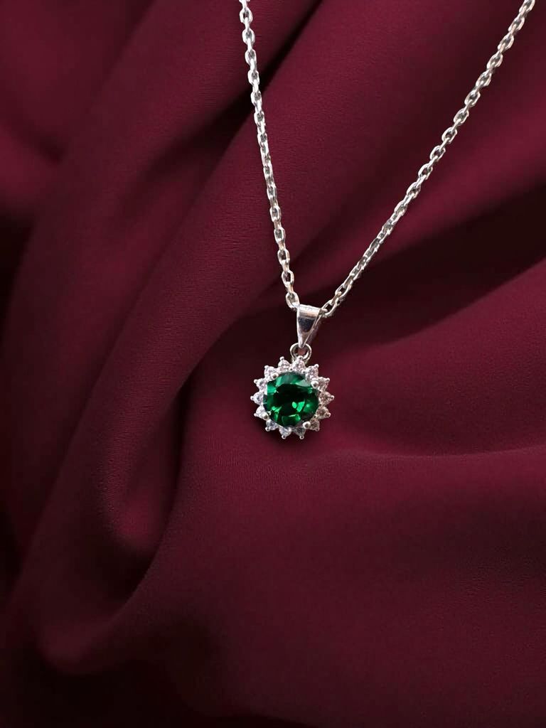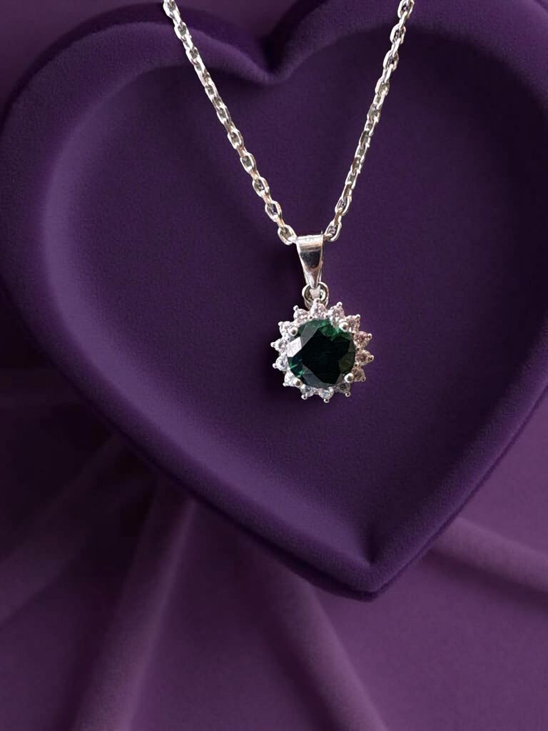 This round elegant emerald diamond pendant is a stunning addition to any woman's jewelry collection. Crafted with precision, the sparkling emerald and diamond combination adds a touch of elegance to any outfit. Elevate your style and make a statement with this timeless pendant. Β  Weight:-1.530 Purity:-92.5